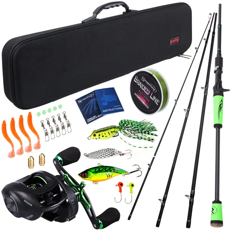 Cheap Sougayilang 4Section M Power Carbon Fiber Rod Full Kit Spinning /Casting Reel Set 100M Fishing Line